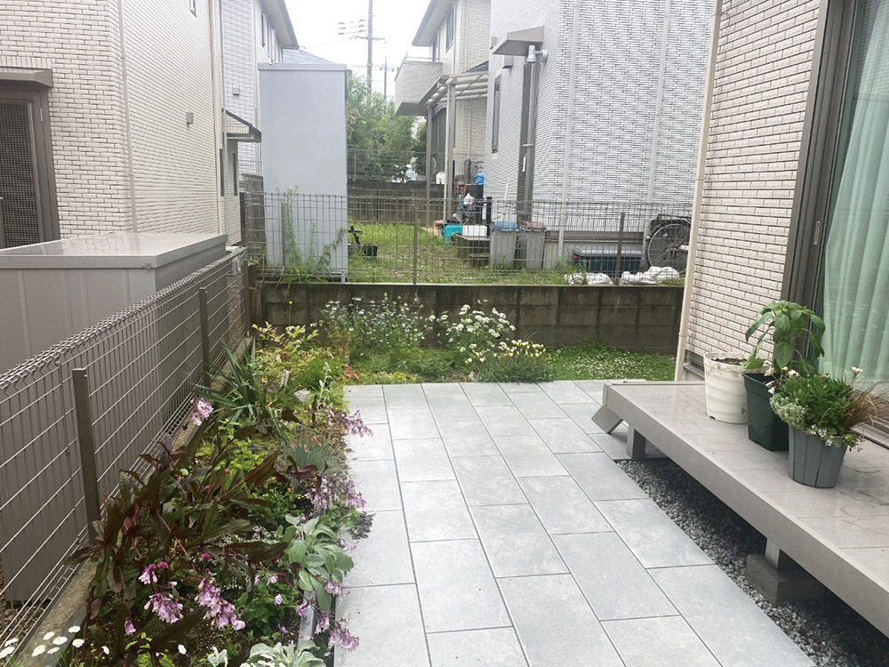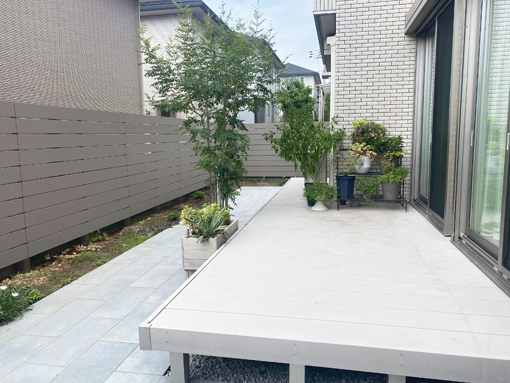 前回はウッドデッキやタイルテラスなどのお庭のリフォーム工事をさせていただき、今回は目隠しフェンスを設置したいとご依頼いただきました。