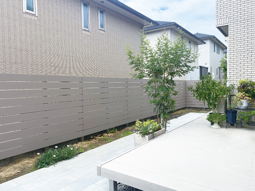 お庭を囲うように目隠しフェンスを設置することでよりプライベート空間に。